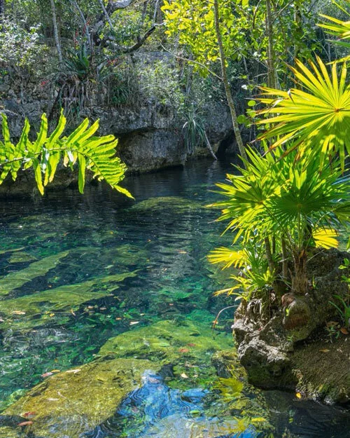 Los cenotes son lugares perfectos para nadar, snorkelear y hacer buceo, la colección más grande en la península de Yucatán se encuentra localizada en Las Cavernas de los mundos escondidos, a sólo unos cuantos km. al sur de Akumal en la carretera 307. En este gran escenario natural encontrarás aventura y belleza más allá de la esperada. Las actividades están disponibles para varios niveles de habilidad, desde nado hasta buceo en las cavernas, los servicios incluyen la única tienda de buceo especializada en buceo de cavernas.