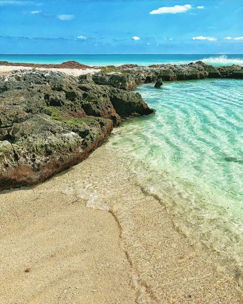 Cerca de Tulum, conocida por ser una de las más exuberantes y hermosas playas, cuyo paraje natural se mantiene alejado de la costa turística, el costo de la entrada es de $300 pesos e incluye la entrada a un cenote.